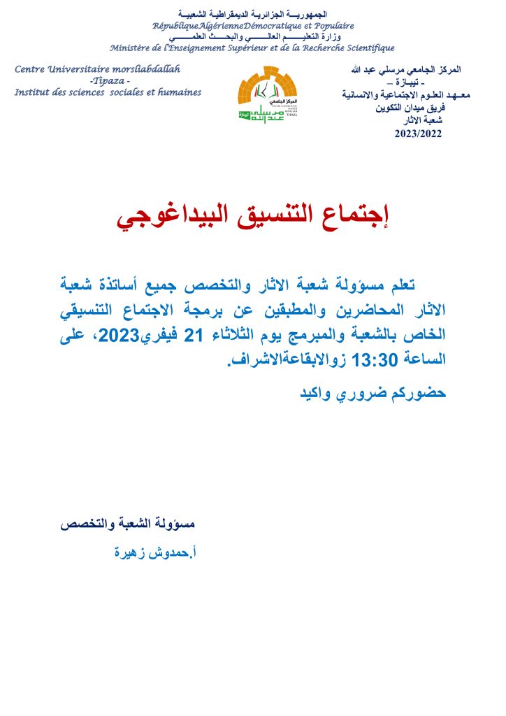 الرئيسية/إعلانات/أساتذة/إجتماع التنسيق البيداغوجي أساتذةإعلانات إجتماع التنسيق البيداغوجي 16 فبراير 2023 296 أقل من دقيقة 16 فبراير 2023 296 أقل من دقيقة اظهر المزيد شاركها فيسبوك تويتر لينكدإن مشاركة عبر البريد طباعة