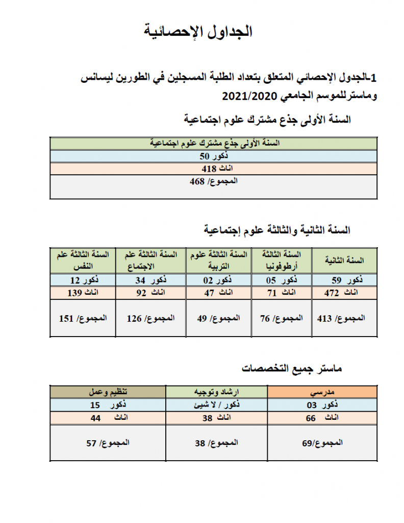إحصائيات طلبة قسم العلوم الإجتماعية