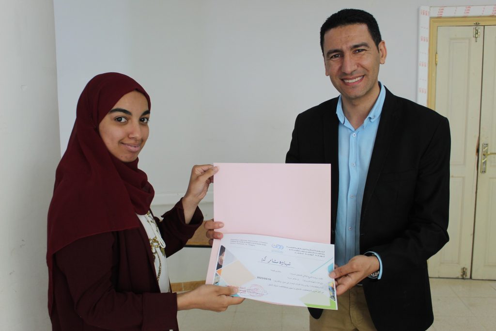 إختتام الدورة التدريبية المنظمة من قبل الوكالة الولائية للتشغيل يوم الخميس 18 ماي 2023 لفائدة الطلبة وتقديم شهادات مشاركة للطلبة المشاركين بحضور مدير المركز الجامعي ، نائب المدير للدراسات في الدراسات والتكوين المتواصل، ومسؤولي الشعب