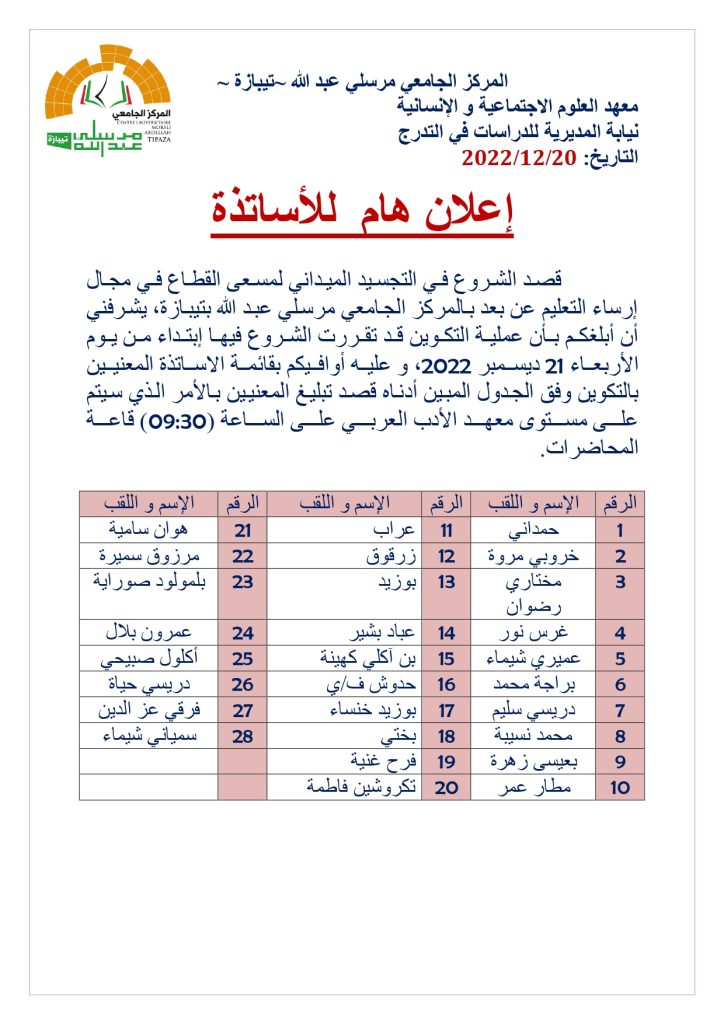 الرئيسية/إعلانات/أساتذة/إعلان بخصوص التجسيد الميداني لمسعى القطاع في مجال إرساء التعليم عن بعد بالمركز الجامعي مرسلي عبد الله -تيبازة أساتذةإعلانات إعلان بخصوص التجسيد الميداني لمسعى القطاع في مجال إرساء التعليم عن بعد بالمركز الجامعي مرسلي عبد الله -تيبازة 20 ديسمبر 2022 320 أقل من دقيقة 20 ديسمبر 2022 320 أقل من دقيقة اظهر المزيد شاركها فيسبوك تويتر لينكدإن مشاركة عبر البريد طباعة
