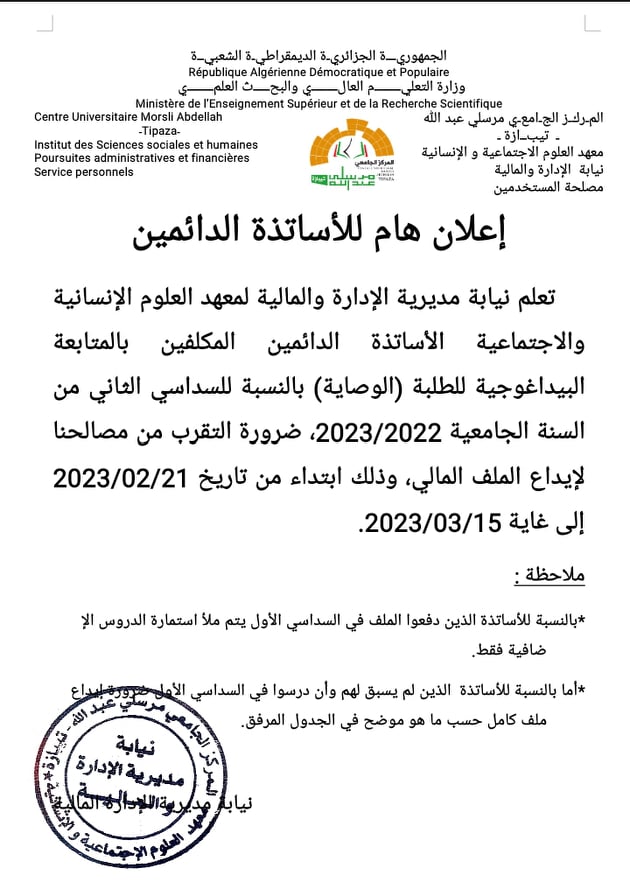 الرئيسية/إعلانات/أساتذة/إعلان بخصوص الملف المالي للأساتذة الدائمين المكلفين بالوصاية على الطلبة أساتذةإعلانات إعلان بخصوص الملف المالي للأساتذة الدائمين المكلفين بالوصاية على الطلبة 21 فبراير 2023 393 أقل من دقيقة 21 فبراير 2023 393 أقل من دقيقة اظهر المزيد شاركها فيسبوك تويتر لينكدإن مشاركة عبر البريد طباعة