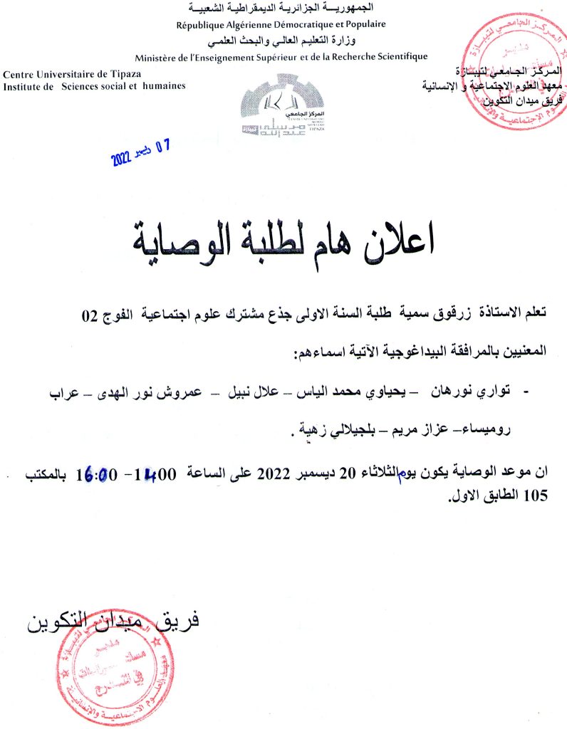 الرئيسية/إعلانات/إعلان عن الوصاية على طلبة السنة الأولى جذع مشترك علوم إجتماعية إعلاناتطلبة إعلان عن الوصاية على طلبة السنة الأولى جذع مشترك علوم إجتماعية 19 ديسمبر 2022 390 أقل من دقيقة 19 ديسمبر 2022 390 أقل من دقيقة اظهر المزيد شاركها فيسبوك تويتر لينكدإن مشاركة عبر البريد طباعة