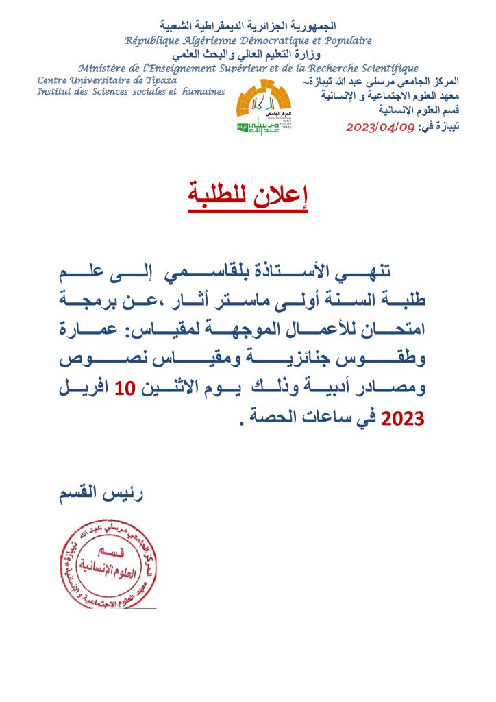 الرئيسية/إعلانات/إعلان عن برمجة إمتحان الأعمال الموجهة إعلاناتطلبة إعلان عن برمجة إمتحان الأعمال الموجهة 9 أبريل 2023 295 أقل من دقيقة 9 أبريل 2023 295 أقل من دقيقة اظهر المزيد شاركها فيسبوك تويتر لينكدإن مشاركة عبر البريد طباعة