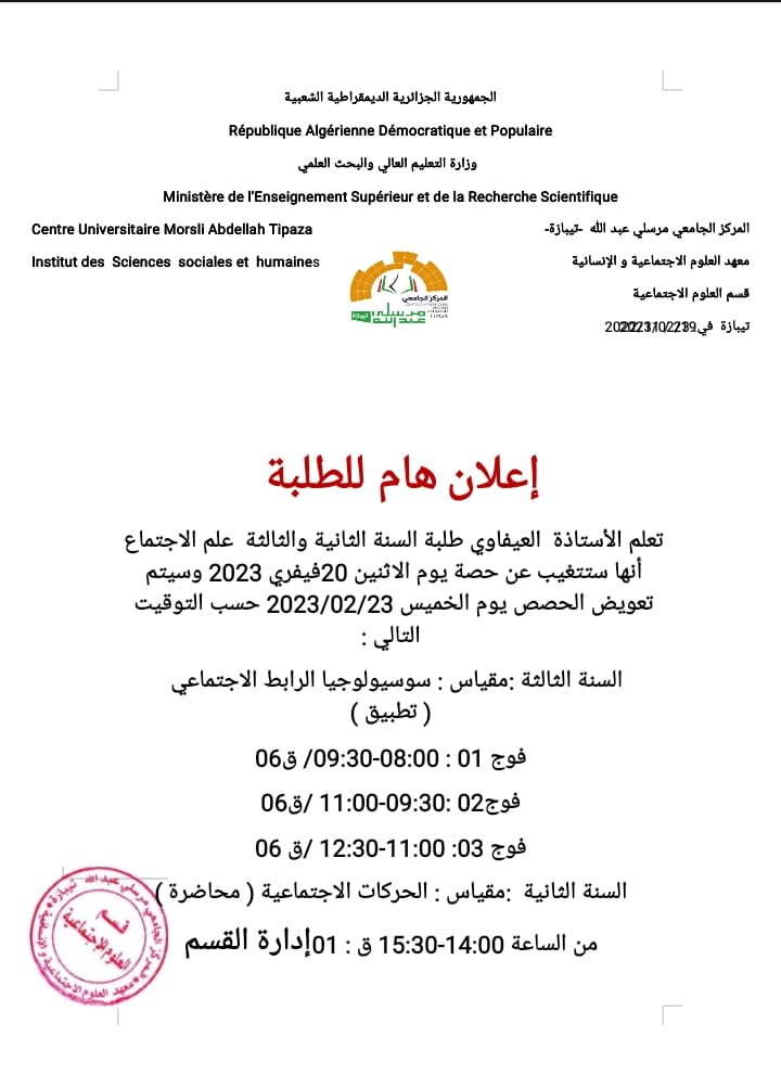الرئيسية/إعلانات/إعلان عن غياب الأستاذة العيفاوي فريدة إعلاناتطلبة إعلان عن غياب الأستاذة العيفاوي فريدة 19 فبراير 2023 475 أقل من دقيقة 19 فبراير 2023 475 أقل من دقيقة اظهر المزيد شاركها فيسبوك تويتر لينكدإن مشاركة عبر البريد طباعة