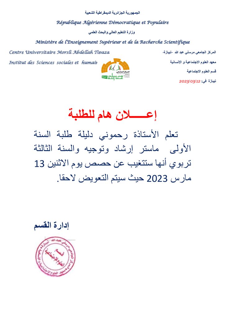 الرئيسية/إعلانات/إعلان عن غياب الأستاذة رحموني دليلة إعلاناتطلبة إعلان عن غياب الأستاذة رحموني دليلة 12 مارس 2023 305 أقل من دقيقة 12 مارس 2023 305 أقل من دقيقة اظهر المزيد شاركها فيسبوك تويتر لينكدإن مشاركة عبر البريد طباعة