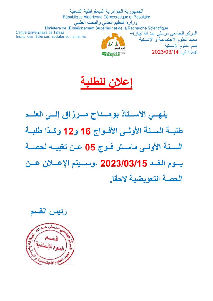 الرئيسية/إعلانات/إعلان عن غياب الأستاذ بومداح مرزاق إعلاناتطلبة إعلان عن غياب الأستاذ بومداح مرزاق 14 مارس 2023 335 أقل من دقيقة 14 مارس 2023 335 أقل من دقيقة اظهر المزيد شاركها فيسبوك تويتر لينكدإن مشاركة عبر البريد طباعة