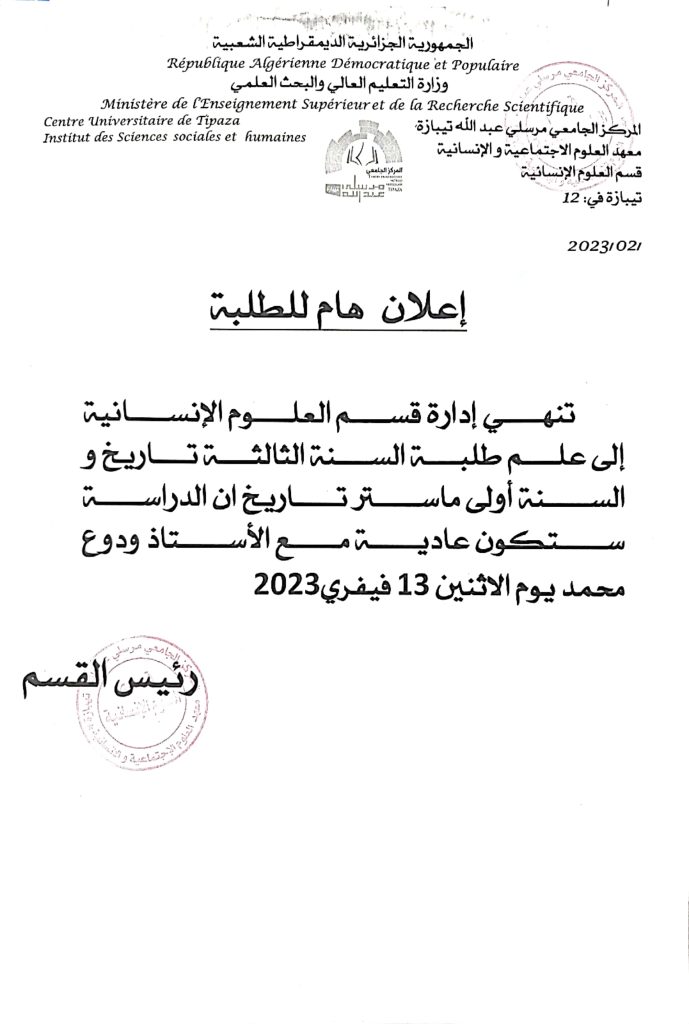 الرئيسية/إعلانات/إعلان عن مزاولة الدراسة بصفة عادية لدى الأستاذ ودوع محمد إعلاناتطلبة إعلان عن مزاولة الدراسة بصفة عادية لدى الأستاذ ودوع محمد 12 فبراير 2023 382 أقل من دقيقة 12 فبراير 2023 382 أقل من دقيقة اظهر المزيد شاركها فيسبوك تويتر لينكدإن مشاركة عبر البريد طباعة