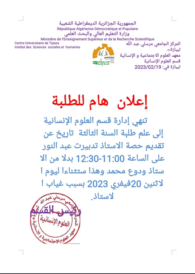 الرئيسية/إعلانات/إعلان هام عن تغيير حصة الأستاذة تدبيرت إعلاناتطلبة إعلان هام عن تغيير حصة الأستاذة تدبيرت 19 فبراير 2023 347 أقل من دقيقة 19 فبراير 2023 347 أقل من دقيقة اظهر المزيد شاركها فيسبوك تويتر لينكدإن مشاركة عبر البريد طباعة
