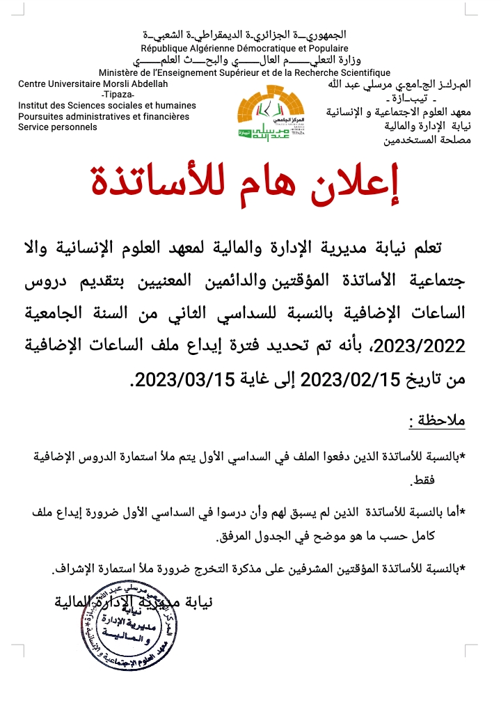 الرئيسية/إعلانات/أساتذة/إعلان هام للأساتذة أساتذةإعلانات إعلان هام للأساتذة 12 فبراير 2023 360 أقل من دقيقة 12 فبراير 2023 360 أقل من دقيقة اظهر المزيد شاركها فيسبوك تويتر لينكدإن مشاركة عبر البريد طباعة