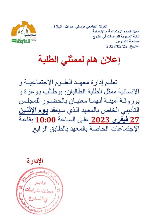 الرئيسية/إعلانات/إعلان هام لممثلي الطلبة بالمعهد إعلاناتطلبة إعلان هام لممثلي الطلبة بالمعهد 22 فبراير 2023 568 أقل من دقيقة 22 فبراير 2023 568 أقل من دقيقة اظهر المزيد شاركها فيسبوك تويتر لينكدإن مشاركة عبر البريد طباعة