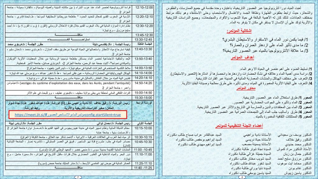 دعوة الباحثين في مختلف التخصصات وفي إطار كتاب جماعي لإنجاز أطلس المصطلحات التاريخية والأثرية والأنثروبولوجية المتعلقة بالماء عبر العصور