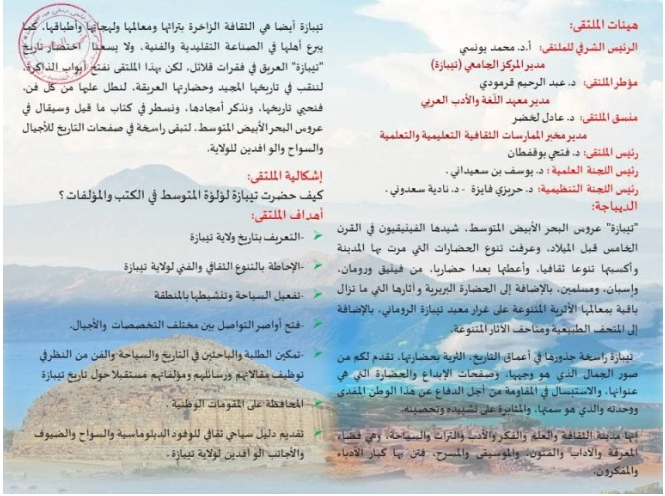 الرئيسية/Slider/الملتقى الوطني الأول بعنوان تيبازة لؤلؤة المتوسط_تاريخ وحضارة وثقافة Sliderأساتذةأيام دراسيةإعلاناتالتظاهرات العلمية للمخبرطلبةمخبر الدراسات التاريخية و الأثرية الملتقى الوطني الأول بعنوان تيبازة لؤلؤة المتوسط_تاريخ وحضارة وثقافة 15 أكتوبر 2023 452 أقل من دقيقة 15 أكتوبر 2023 452 أقل من دقيقة اظهر المزيد شاركها فيسبوك تويتر لينكدإن مشاركة عبر البريد طباعة