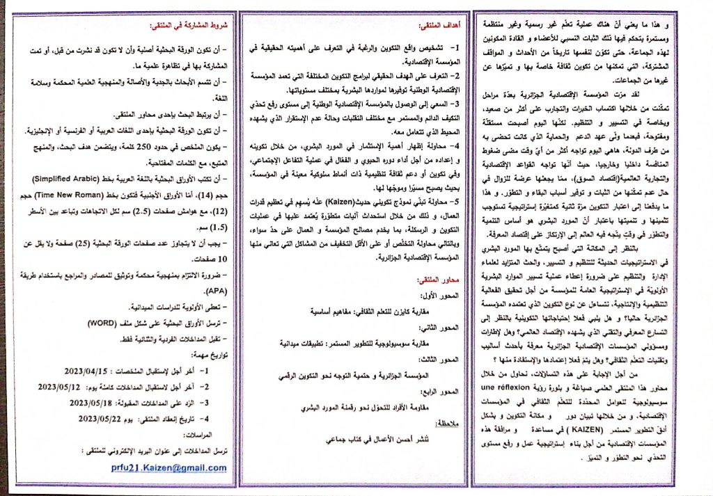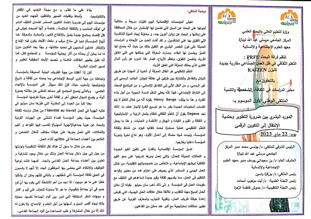 الملتقى الوطني الموسوم ب”المورد البشري بين ضرورة التطوير وحتمية الإنتقال إلى التكوين الرقمي”