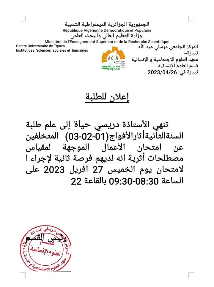 الرئيسية/إعلانات/برمجة إمتحان الأعمال الموجة للطلبة المتغيبين إعلاناتطلبة برمجة إمتحان الأعمال الموجة للطلبة المتغيبين 26 أبريل 2023 285 أقل من دقيقة 26 أبريل 2023 285 أقل من دقيقة اظهر المزيد شاركها فيسبوك تويتر لينكدإن مشاركة عبر البريد طباعة