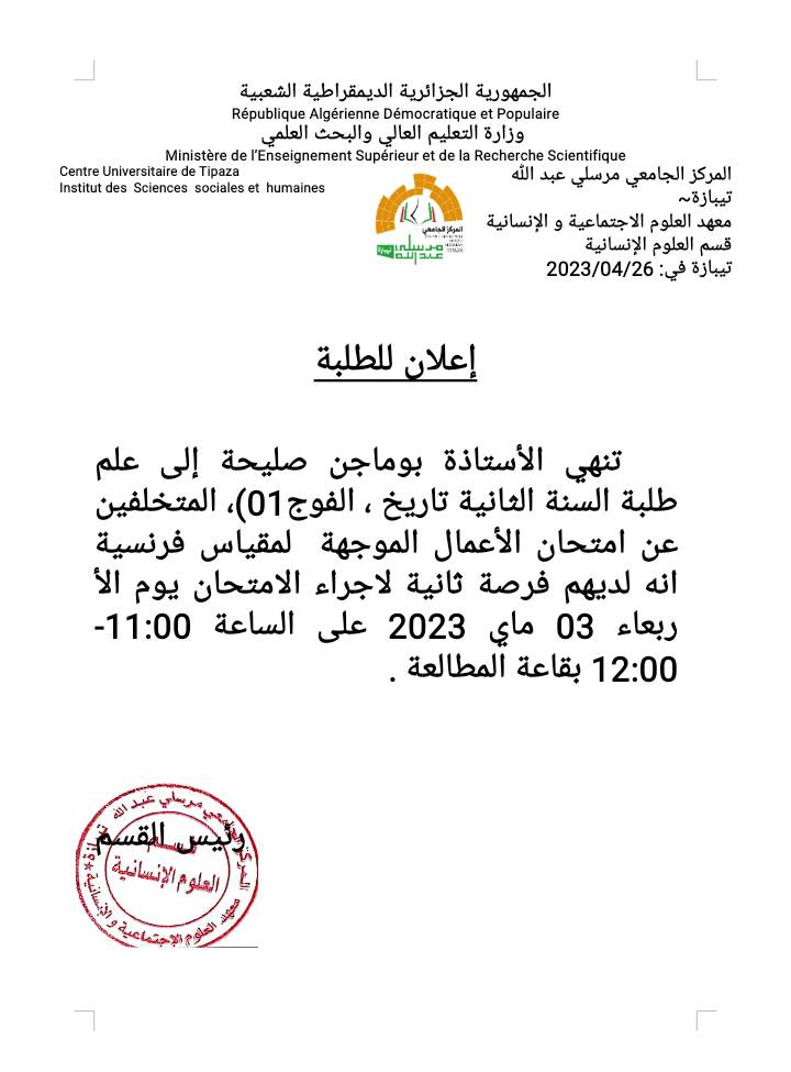الرئيسية/إعلانات/برمجة إمتحان الأعمال الموجهة للطلبة المتغيبين إعلاناتطلبة برمجة إمتحان الأعمال الموجهة للطلبة المتغيبين 26 أبريل 2023 298 أقل من دقيقة 26 أبريل 2023 298 أقل من دقيقة اظهر المزيد شاركها فيسبوك تويتر لينكدإن مشاركة عبر البريد طباعة