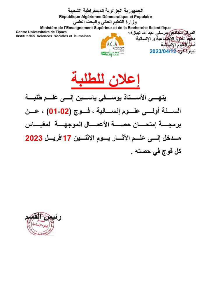 الرئيسية/إعلانات/برمجة إمتحان في حصة الأعمال الموجهة إعلاناتطلبة برمجة إمتحان في حصة الأعمال الموجهة 12 أبريل 2023 274 أقل من دقيقة 12 أبريل 2023 274 أقل من دقيقة اظهر المزيد شاركها فيسبوك تويتر لينكدإن مشاركة عبر البريد طباعة