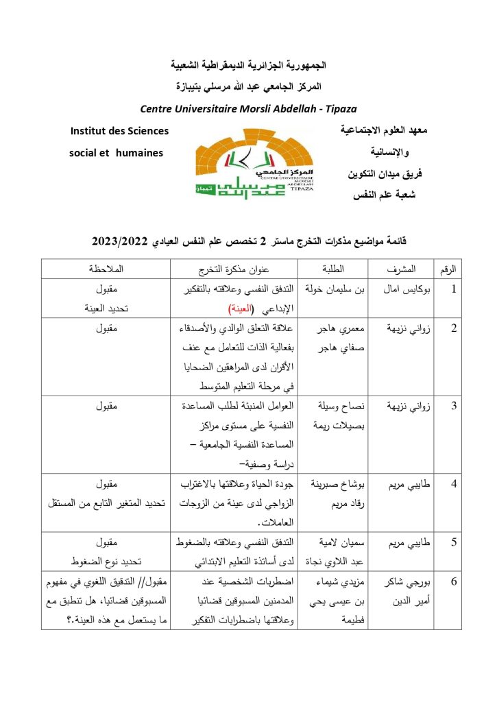 الرئيسية/إعلانات/قائمة مذكرات ماستر علم النفس العيادي إعلاناتطلبة قائمة مذكرات ماستر علم النفس العيادي 5 فبراير 2023 6٬782 أقل من دقيقة 5 فبراير 2023 6٬782 أقل من دقيقة اظهر المزيد شاركها فيسبوك تويتر لينكدإن مشاركة عبر البريد طباعة