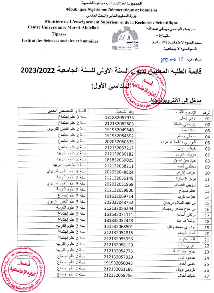 الرئيسية/إعلانات/قوائم الطلبة المعنيين بديون السنة الأولى علوم إجتماعية لسنة 2023/2022 إعلاناتطلبة قوائم الطلبة المعنيين بديون السنة الأولى علوم إجتماعية لسنة 2023/2022 18 ديسمبر 2022 628 أقل من دقيقة 18 ديسمبر 2022 628 أقل من دقيقة اظهر المزيد شاركها فيسبوك تويتر لينكدإن مشاركة عبر البريد طباعة