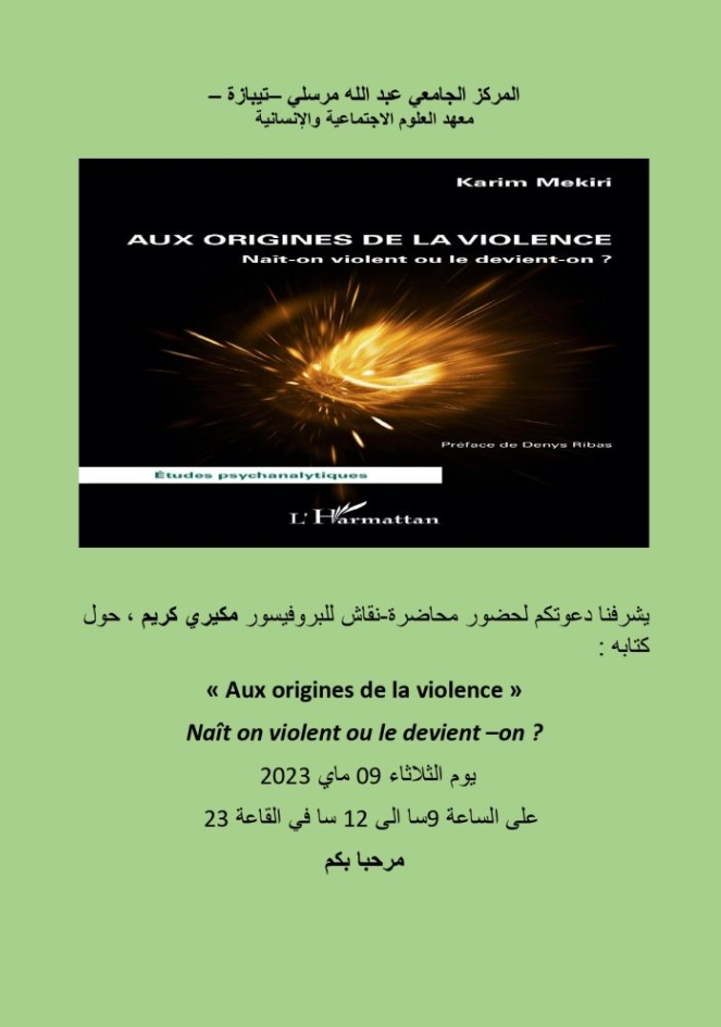 الرئيسية/Slider/محاضرة نقاش حول كتاب”من حيث متابع العنف”للبروفيسور مكيري كريم Sliderأساتذةأيام دراسيةتظاهرات ثقافيةتظاهرات علميةطلبةموظفين محاضرة نقاش حول كتاب”من حيث متابع العنف”للبروفيسور مكيري كريم 3 مايو 2023 513 أقل من دقيقة 3 مايو 2023 513 أقل من دقيقة اظهر المزيد شاركها فيسبوك تويتر لينكدإن مشاركة عبر البريد طباعة