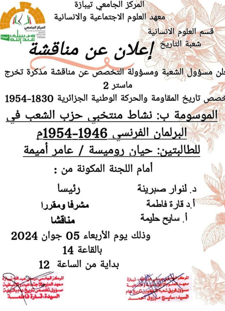 الرئيسية/Slider/مناقشة مذكرة تخرج ماستر تاريخ المقاومة والحركة الوطنية تحت عنوان نشاط منتخبي حزب الشعب في البرلمان الفرنسي 1946-1954 Sliderأساتذةإعلاناتطلبة مناقشة مذكرة تخرج ماستر تاريخ المقاومة والحركة الوطنية تحت عنوان نشاط منتخبي حزب الشعب في البرلمان الفرنسي 1946-1954 2 يونيو 2024 464 أقل من دقيقة 2 يونيو 2024 464 أقل من دقيقة اظهر المزيد شاركها فيسبوك تويتر لينكدإن مشاركة عبر البريد طباعة