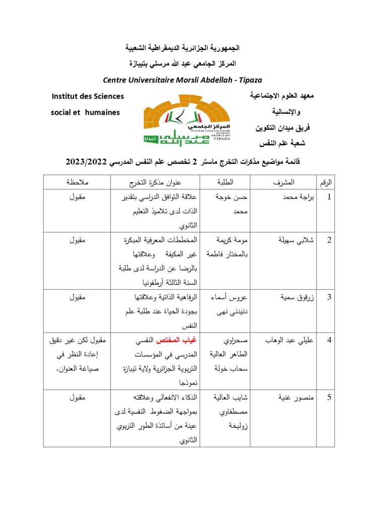 الرئيسية/إعلانات/مواضيع مذكرات ماستر علم النفس المدرسي إعلاناتطلبة مواضيع مذكرات ماستر علم النفس المدرسي 5 فبراير 2023 3٬146 أقل من دقيقة 5 فبراير 2023 3٬146 أقل من دقيقة اظهر المزيد شاركها فيسبوك تويتر لينكدإن مشاركة عبر البريد طباعة