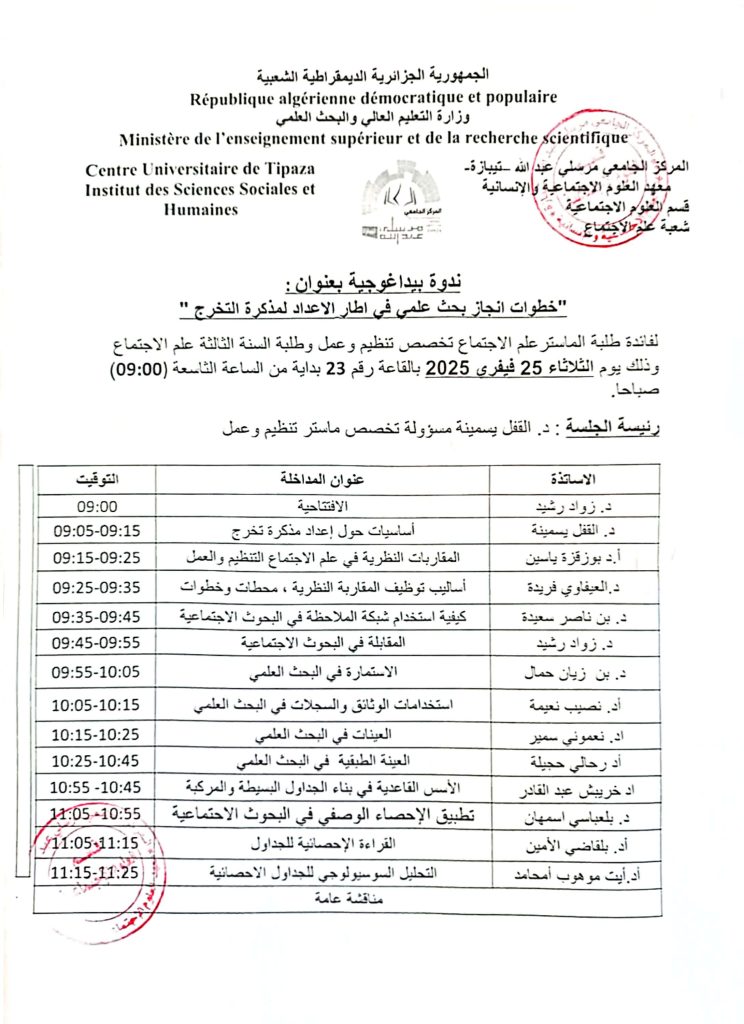 ندوة بيداغوجية تحت عنوان خطوات إنجاز بحث علمي في إطار الإعداد لمذكرة التخرج