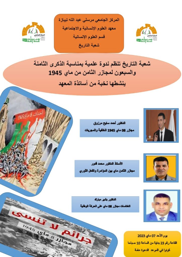 الرئيسية/Slider/ندوة علمية بمناسبة الذكرى الثامنة والسبعون لمجازر الثامن ماي 1945 Sliderأساتذةأيام دراسيةتظاهرات ثقافيةتظاهرات علميةطلبةموظفين ندوة علمية بمناسبة الذكرى الثامنة والسبعون لمجازر الثامن ماي 1945 2 مايو 2023 410 أقل من دقيقة 2 مايو 2023 410 أقل من دقيقة اظهر المزيد شاركها فيسبوك تويتر لينكدإن مشاركة عبر البريد طباعة