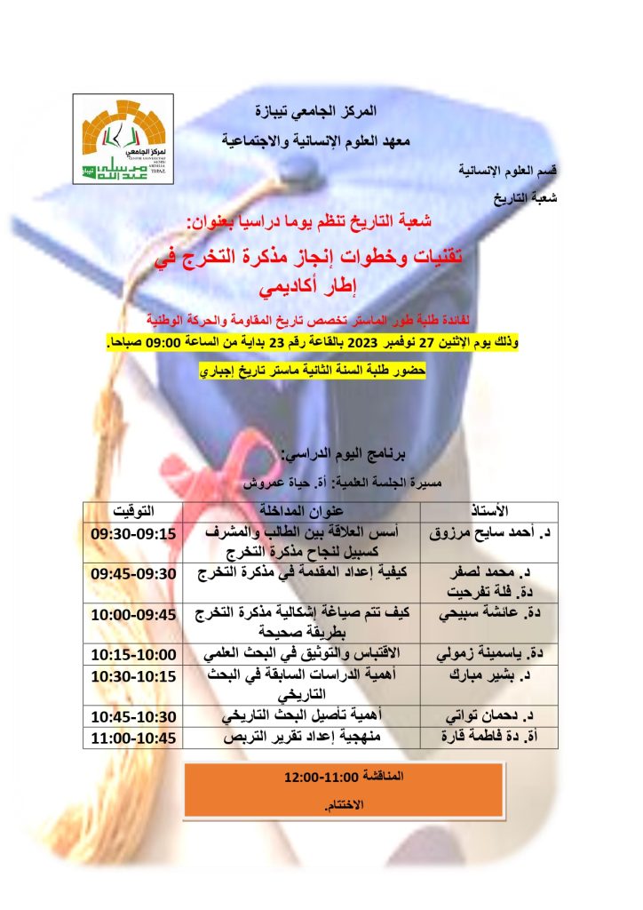 الرئيسية/Slider/يوم دراسي حول تقنيات وخطوات إنجاز مذكرة التخرج في إطار أكاديمي Sliderأساتذةأيام دراسيةإعلاناتطلبة يوم دراسي حول تقنيات وخطوات إنجاز مذكرة التخرج في إطار أكاديمي 23 نوفمبر 2023 405 أقل من دقيقة 23 نوفمبر 2023 405 أقل من دقيقة اظهر المزيد شاركها فيسبوك تويتر لينكدإن مشاركة عبر البريد طباعة