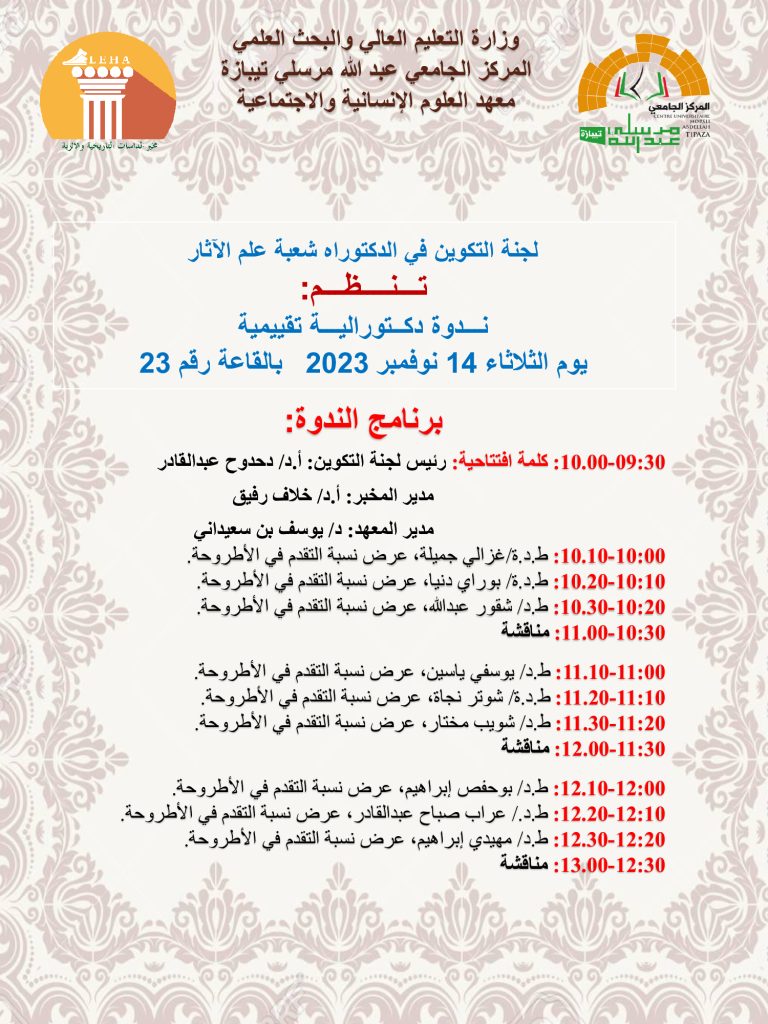 الرئيسية/Slider/ندوة دكتورالية تقييمية لطلبة الدكتوراه Sliderأساتذةأيام تكوينيةأيام دراسيةإعلاناتالتظاهرات العلمية للمخبرتظاهرات علميةطلبةمخبر الدراسات التاريخية و الأثرية ندوة دكتورالية تقييمية لطلبة الدكتوراه 5 نوفمبر 2023 472 أقل من دقيقة 5 نوفمبر 2023 472 أقل من دقيقة اظهر المزيد شاركها فيسبوك تويتر لينكدإن مشاركة عبر البريد طباعة