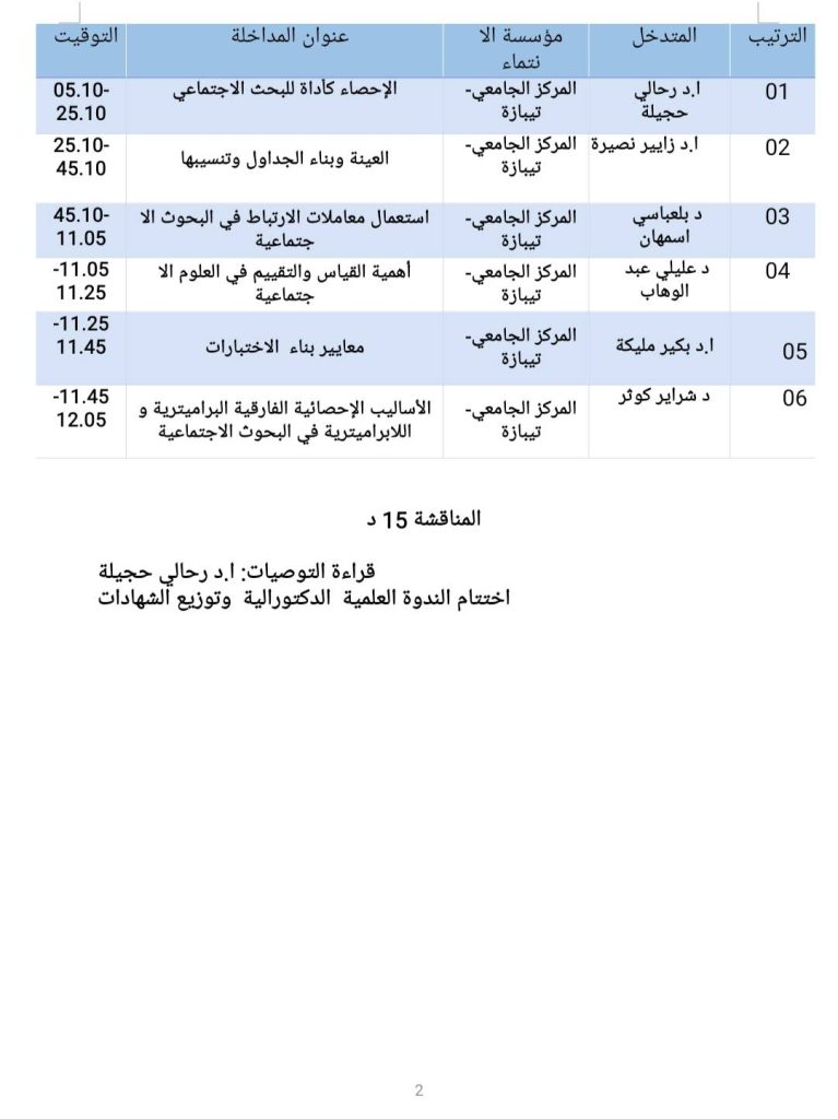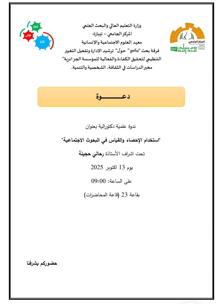 ندوة دكتورالية حول استخدام الإحصاء والقياس في البحوث الإجتماعية
