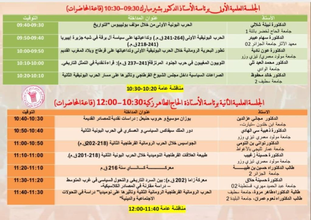ملتقى وطني حضوري بعنوان الحروب الرومانية القرطاجية وتداعياتها على بلاد المغرب القديم