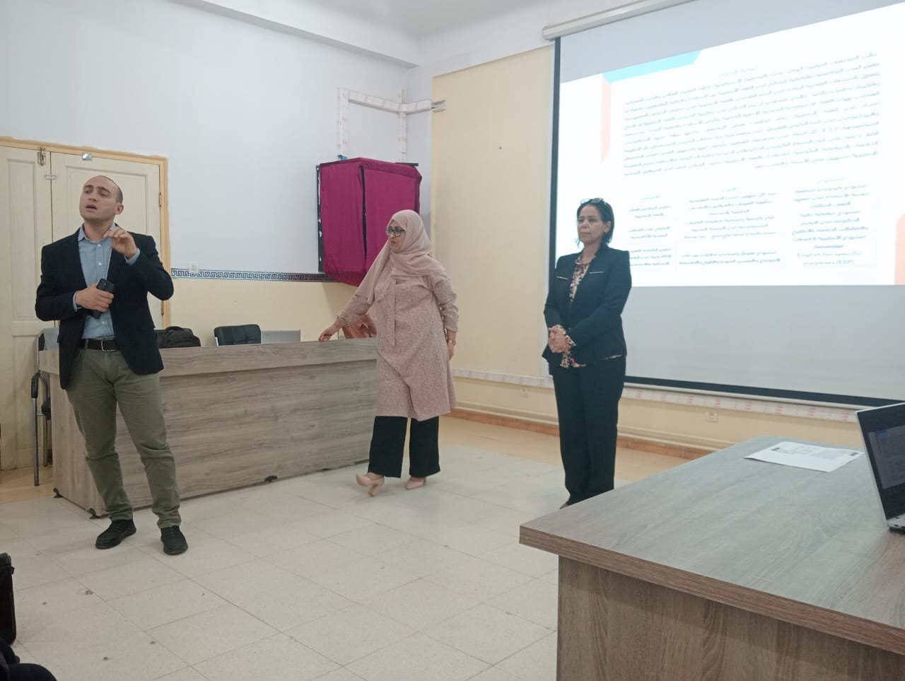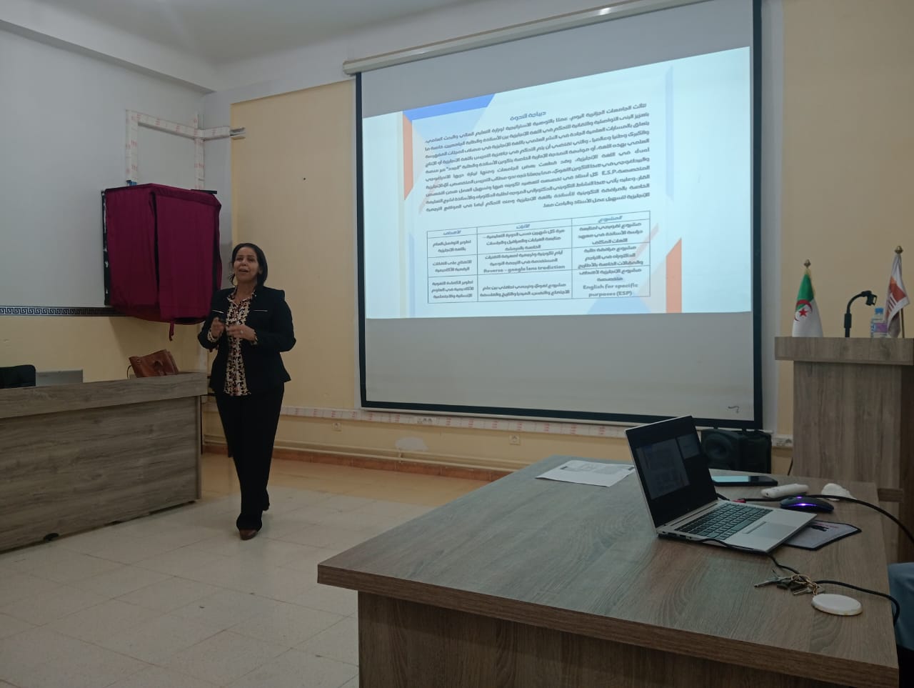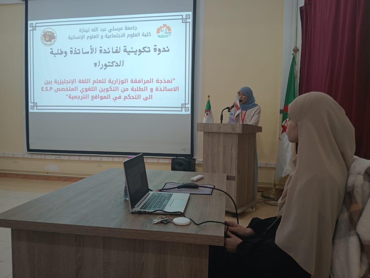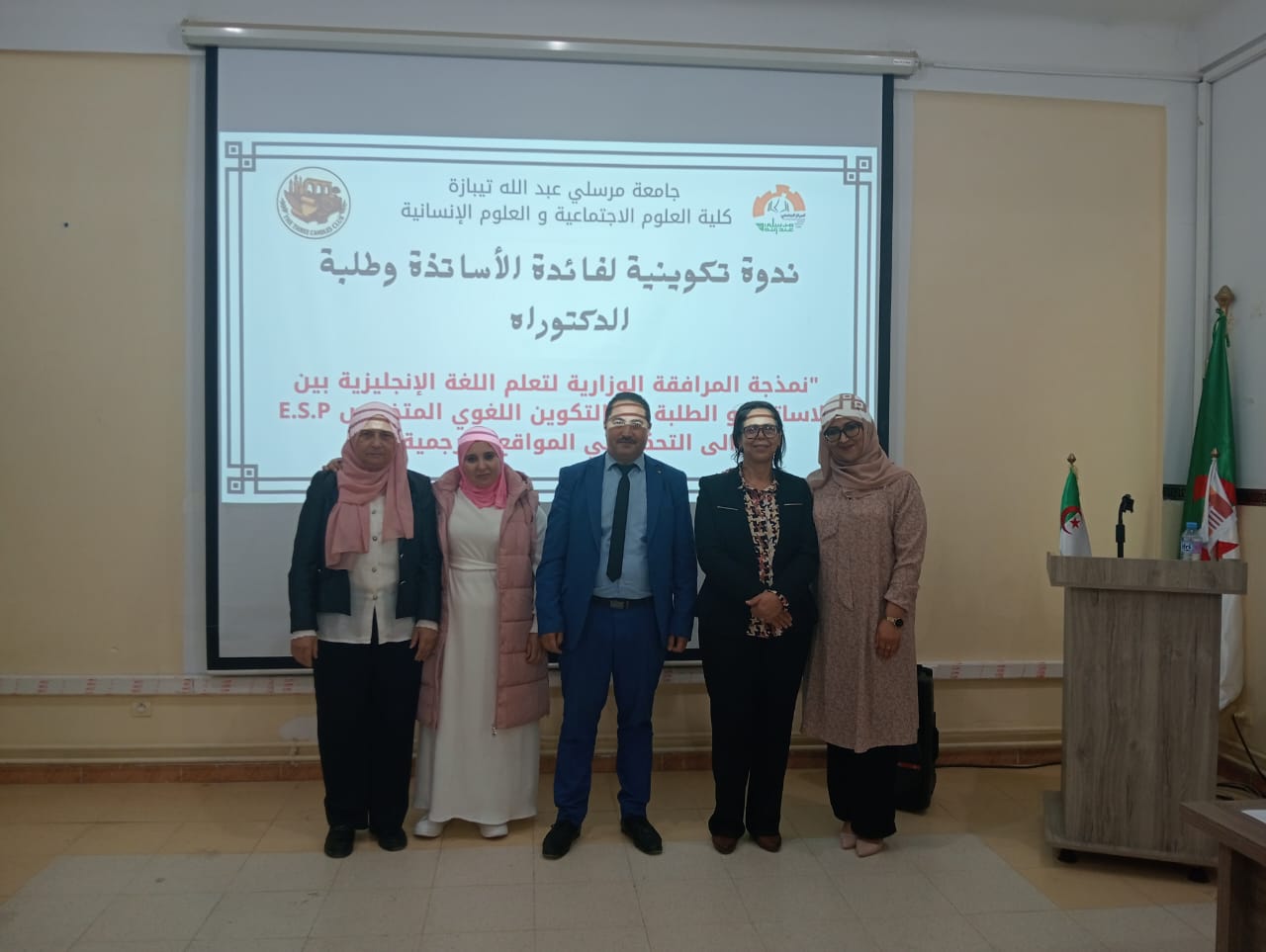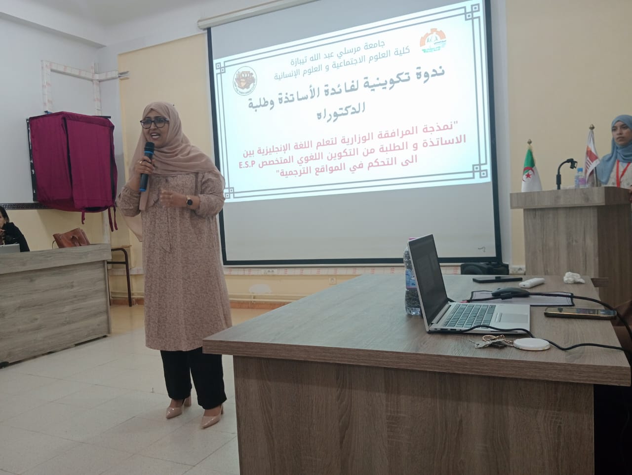 نظمت كلية العلوم الاجتماعية والإنسانية ندوة تكوينية لفائدة الأساتذة وطلبة الدكتوراه بخصوص نمذجة المرافقة الوزارية لتعليمية اللغة الإنجليزية بين الأساتذة والطلبة من التكوين اللغوي المتخصص E.S.P إلى التحكم في المواقع الترجمية.